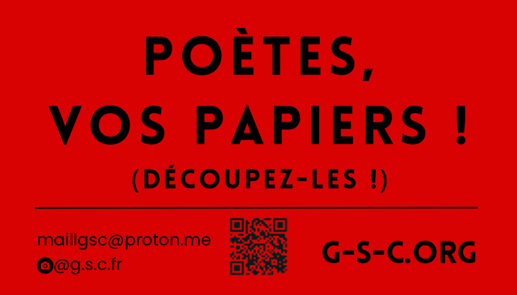 PAPILLON // POÈTES, VOS PAPIERS ! (1 papillon, recto/verso, en rouge et en noir)